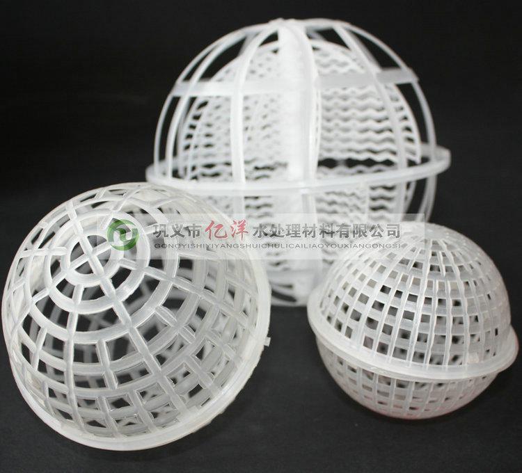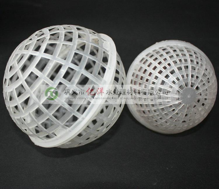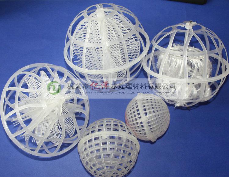 PP懸浮球填料型號有φ80mm(2000個/立方)、φ100mm(100個/立方)、φ120mm(560個/立方)、φ150mm(300個/立方)